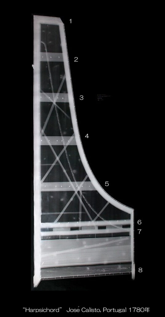 そして、響胴自体に”ねじり”が生じやすくするために スペースを設け、サイド側と接合させないやり方はハープシコードにも見ることができます。