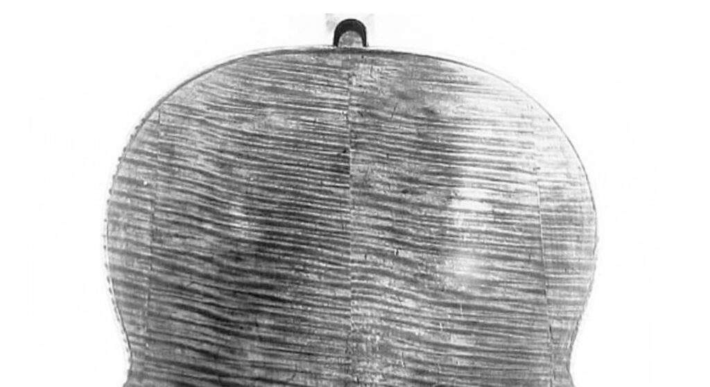 最後に このアマティ・チェロと同じような”木伏”で製作された、ストラディバリウス・チェロ “de Barjansky” 1690年頃のCT画像で、反転された木理のようすを観察してみてください。
