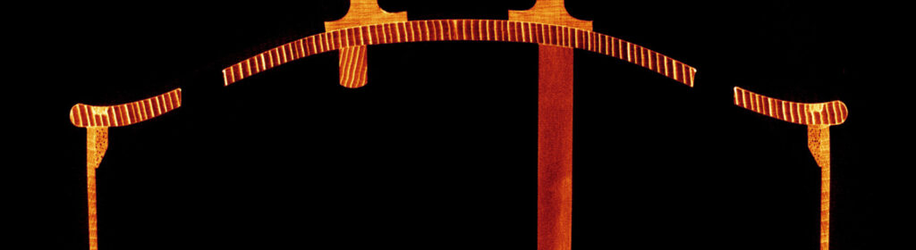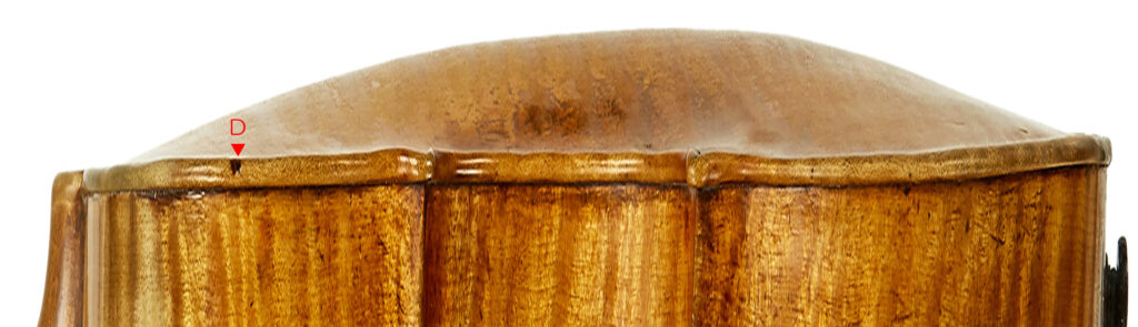 因みに 私が知る限り、コーナー部トップにあたる”側線”が 基準面に対して”4つ全てが直角”という事例は ありませんでした。ですから、弦楽器を観察する場合は すべての響胴コーナー部で側線がホリゾンタル面に対して垂直に作られているものは最近のものか修復者によるか、贋作である可能性を念頭におきます。