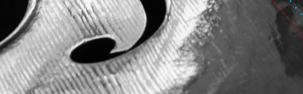 たとえば、能楽で用いる打楽器である”太鼓”は、胴、革、調べ緒からなり、木製の台に掛けて2本の撥(ばち)で演奏します。胴は直径26cm程、高さ15cm程で 欅(けやき)や 栴檀(せんだん)で作られ、革は牛革を用い、胴と革は 調べ緒で連結され、きつく締め上げられています。この”太鼓”の内壁にも 個々に程度の差はありますが、螺旋状の彫り込みを見ることができます。