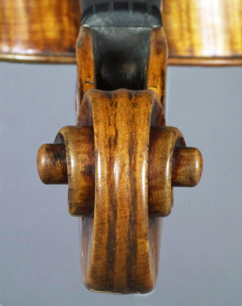 このヴァイオリンのボリュート基礎部は、前出のクレモナ派のものと類似していました。