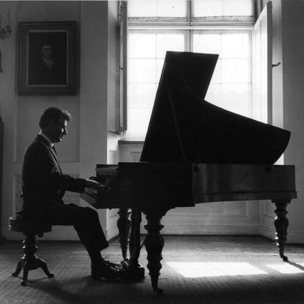 Leonard Bernstein( 1918-1990 ) at Frédéric Chopin’s( 1810-1849 ) piano, in Warsaw, Poland. 1959年撮影.