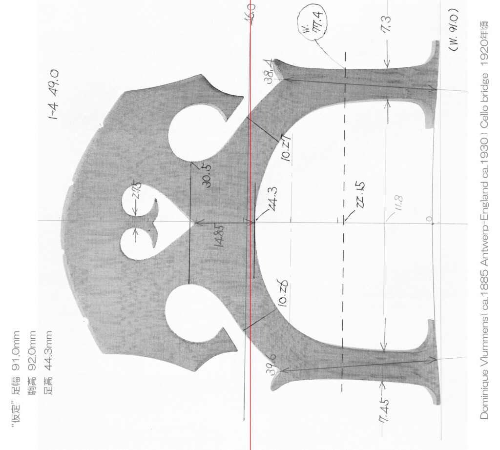 2021.11.25 “JIYUGAOKA VIOLIN”, Cello bridge No.4 ( 駒高さ 91.0mm ) 股下 39.0mm