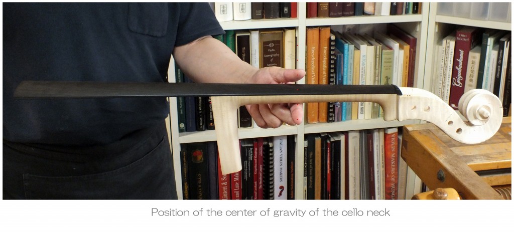 このバランスで組み上げると響胴のレゾナンスを豊かにできます。オールド・チェロでは完成させるために弦を張って響のバランス調整をする最後の段階で もう一度この部分の左右差を焼けた工具などを用いて調整したものがたくさんあります。
