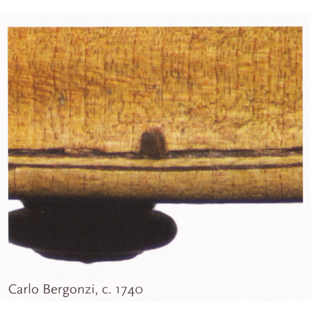 先ず、広葉樹ピンについて 可能な限りオールド弦楽器の検証をおこないました。その一部を 具体例としてあげておきます。