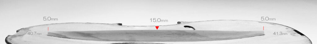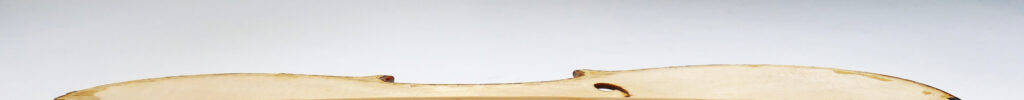しかし、どのタイミングであったかは判然としませんが、それが解決できなかったので エンドブロックに補強として新たに接着されたスプルース板( 下の”断面画像”を参照してください。 )に再び クラックが生じています。