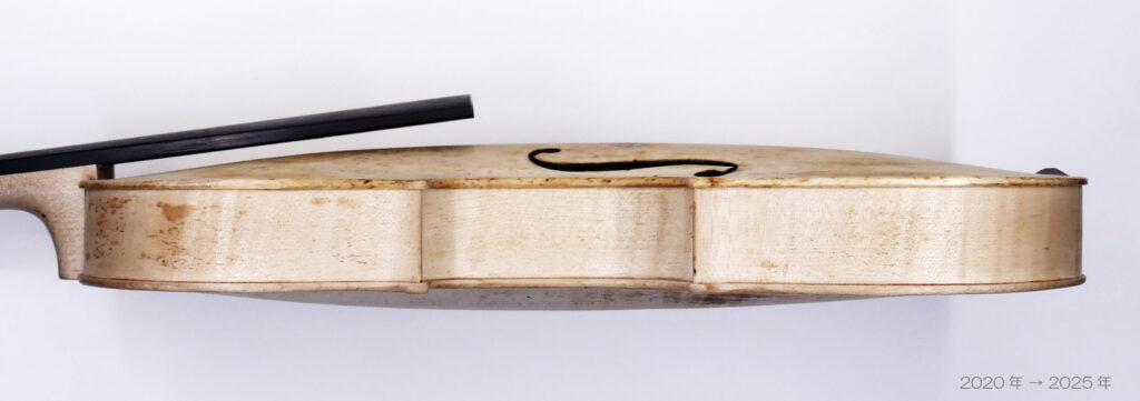その表板設定などにより、結果として… 絶不調に陥っていたヴァイオリンを、最良のレスポンスや響きが生じるようにとのことでしたので、私にとって この仕事は難問でした。