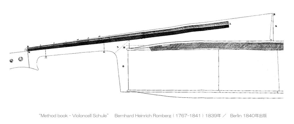 バスバーの”大型化”は、チェリストのロンベルクが 1840年に出版した”チェロ奏法”の参照図のように、19世紀には既に ひとつの選択肢となっていました。