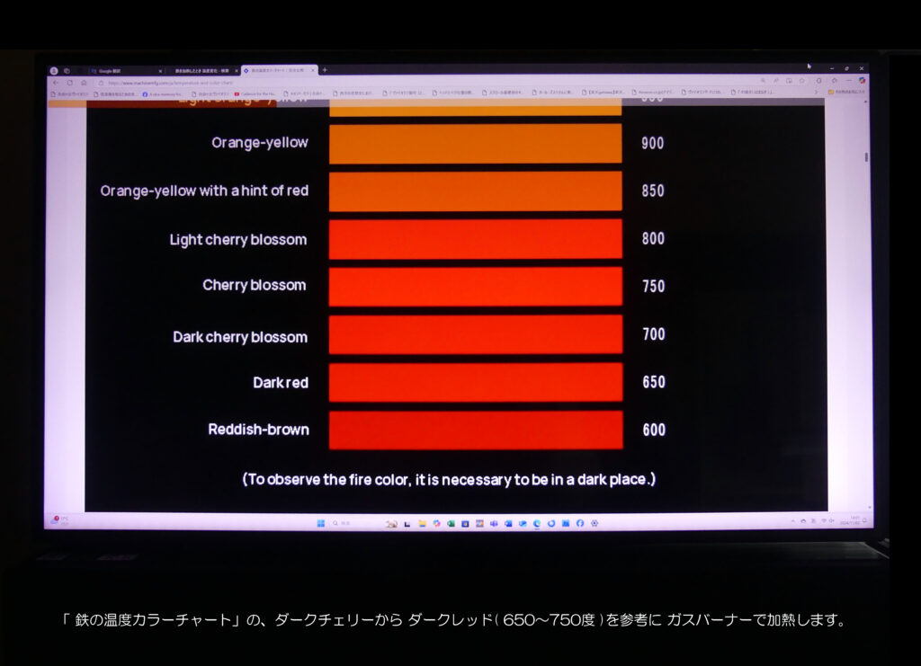 この釘穴成形には、鍛造鉄釘の直径などを調べ 直径違いの8種類ほどのドリルを、先端から徐々に太くして準備する方法と、”先進導坑”を先に開けておき 埋め込む鍛造鉄釘を650~750度ほどに加熱し成形する方法とがあります。