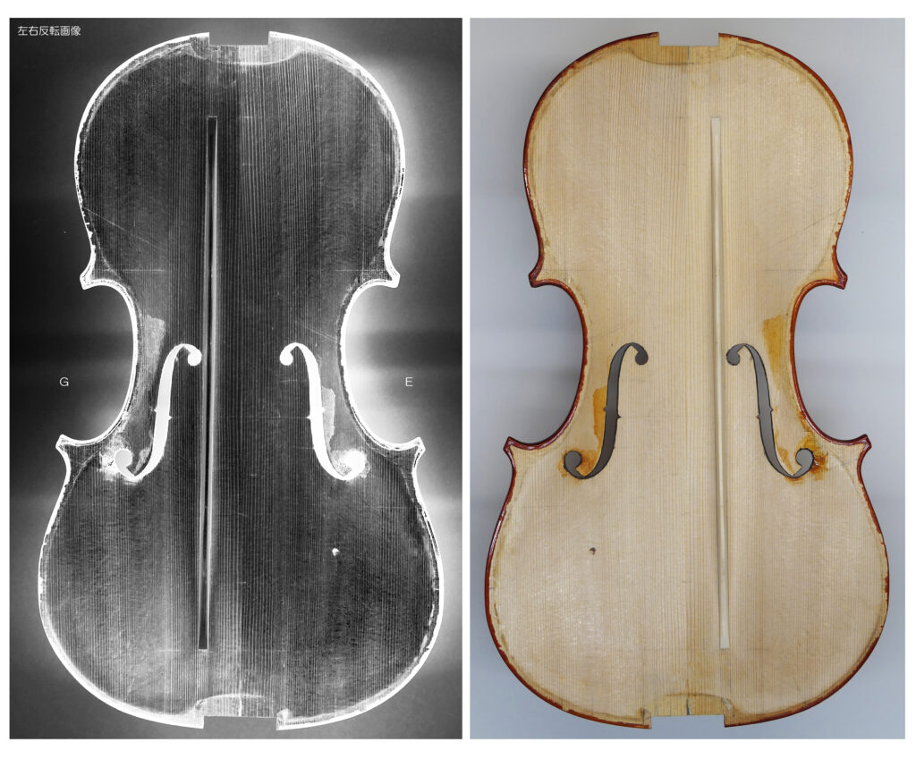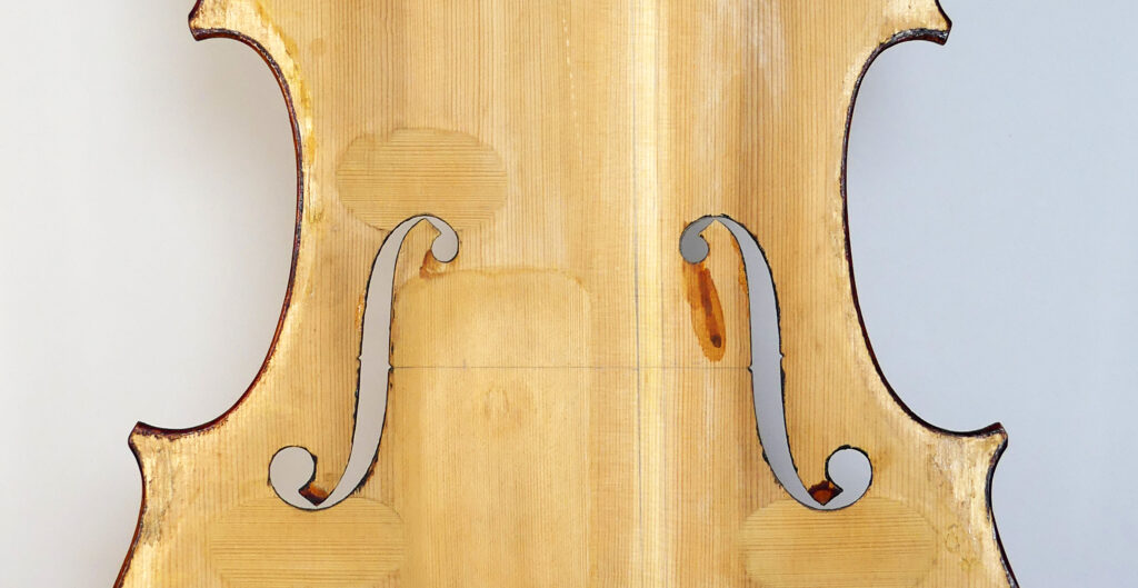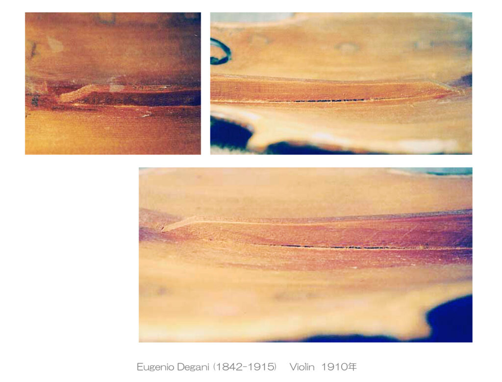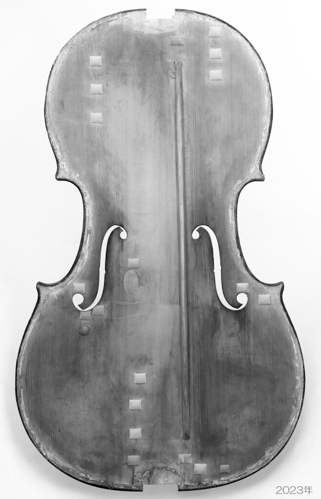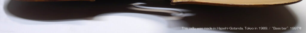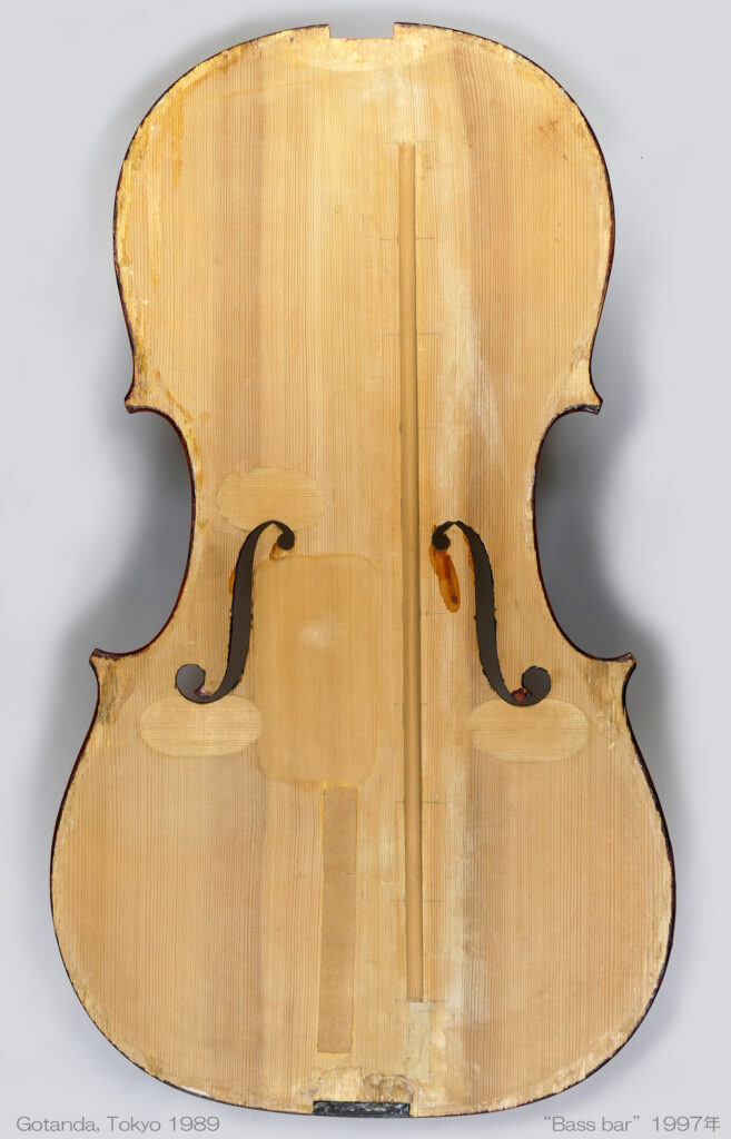 たとえば、1989年に東京、東五反田で受注製作されたチェロは 演奏による表板変形破損が何度も生じ、その度に 製作工房で改修が加えられました。