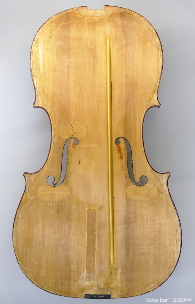 このような試みは 1721年製ガリアーノ・ヴァイオリンに入れられたバスバーのように、すでに18世紀初頭には採用する弦楽器製作者がおり、20世紀初頭までのヴァイオリンなどで 時々 見受けられます。Old Cello