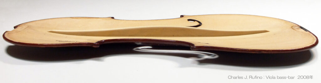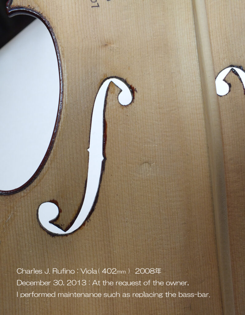 それから、Charles J. Rufino氏が 2008年に製作した ビオラ( 402mm ) は、魂柱のめり込みからも分かるように 使用して数年で疲労変形が進み鳴らなくなりました。