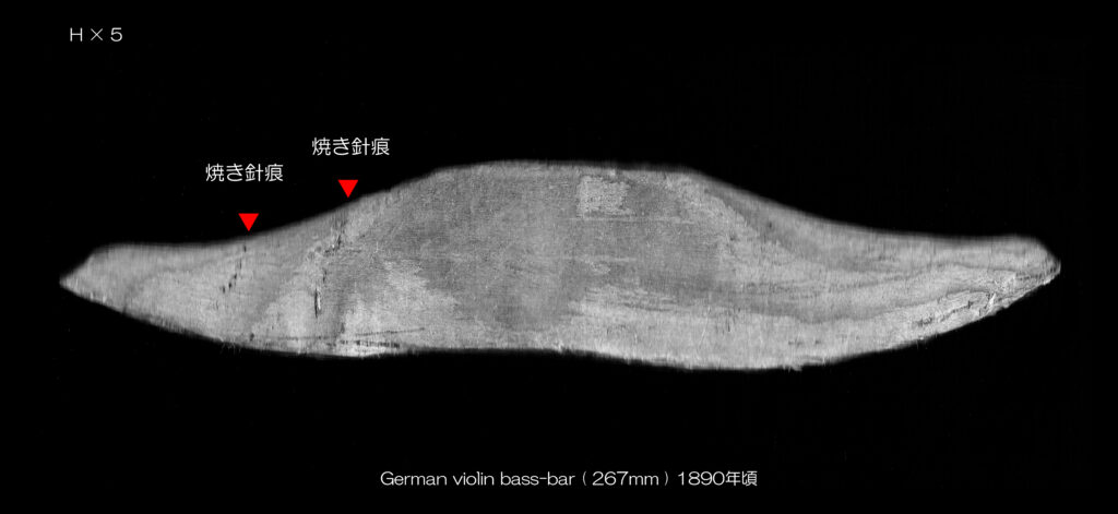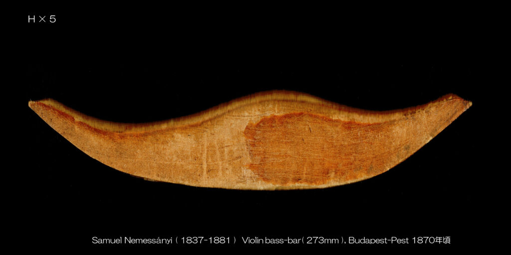 同様に 1870年頃のヴァイオリン・バスバー画像を縦方向のみ5倍にしたものも上げておきます。