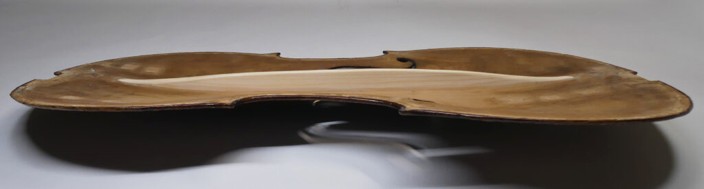 そのヴァイオリンは表板アーチが高さ16mmで 全体感として重く感じられ、響胴アーチも 剛性のキャラクター設定が難しい”起伏が少ないタイプ”でした。