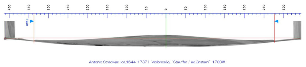 Joseph Naomi Yokota  Cello, Tokyo anno 2025 /  Arch height 32.0mm / Bass-bar height 29.6mm  Antonio Stradivari  Cello,  “The Stauffer-ex Cristiani”