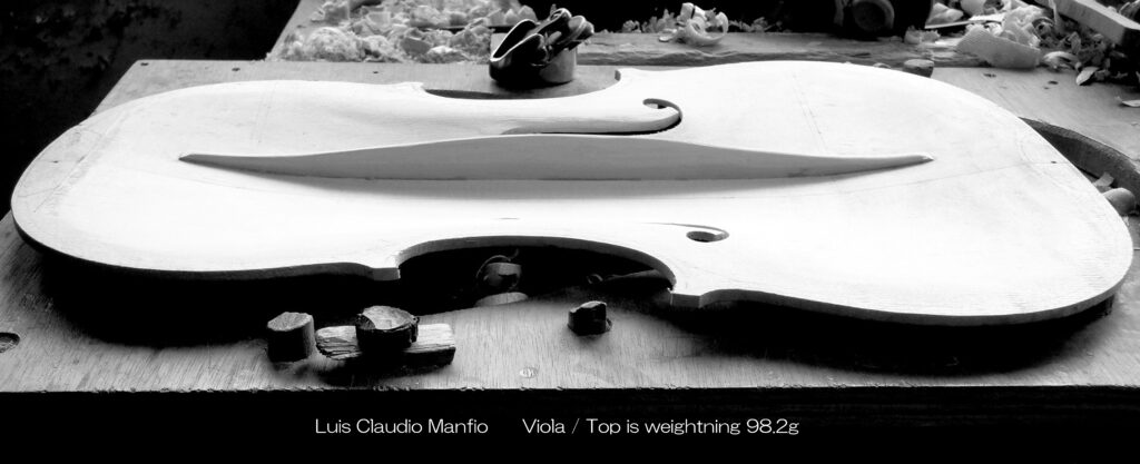 それから時が経ち、ヴァイオリン、ビオラ、チェロでバスバーをいくつも製作し さらに検証を進めた結果、レスポンスや響きのキャリング力を高めるためには、やはり 高さを最大化することが重要だと確信するようになりました。2025年 November 15, 0:18  Bass-bar height 14.8mm / Arch height 16.0mm / Weight of the top plate72.7g ( including bass bar 6.1g )